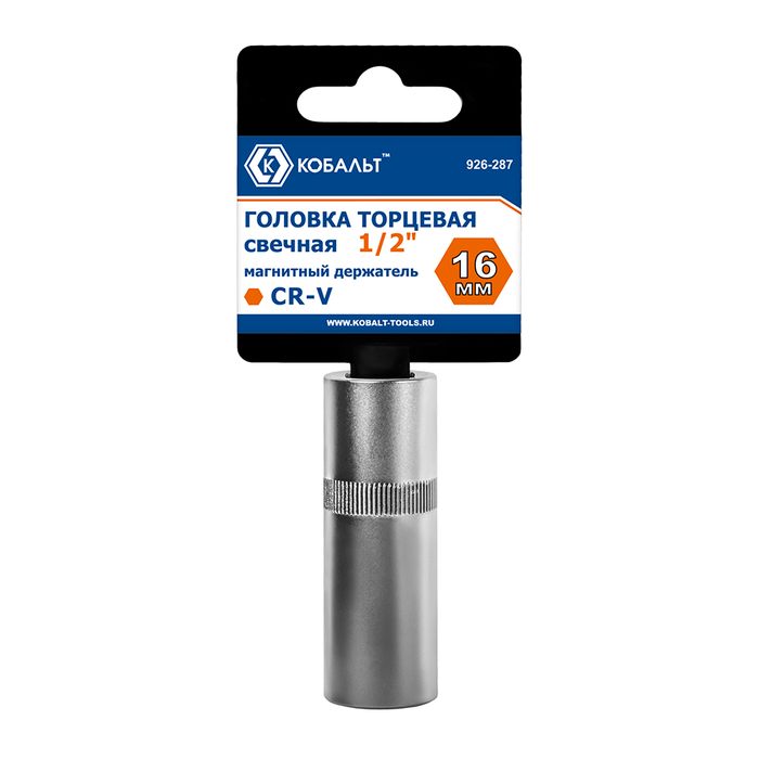 Головка торцевая свечная КОБАЛЬТ 1/2", 16 мм, МАГНИТНЫЙ ДЕРЖАТЕЛЬ СВЕЧИ, CR-V, подвес (926-287) - цена, фото, технические характеристики