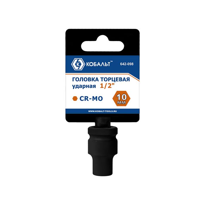 Головка торцевая ударная КОБАЛЬТ 1/2", 10 мм, CR-MO, подвес (642-098) - цена, фото, технические характеристики