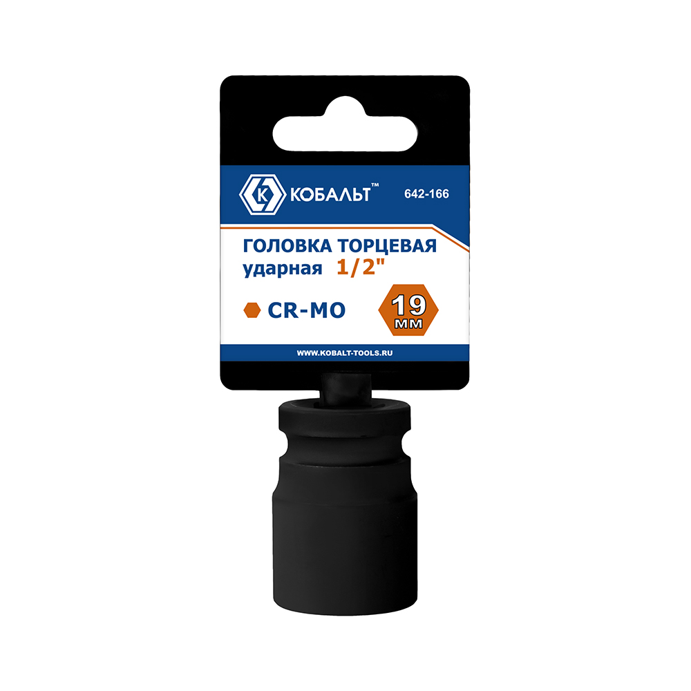 Головка торцевая ударная КОБАЛЬТ 1/2", 19 мм, CR-MO, подвес (642-166) - цена, фото, технические характеристики