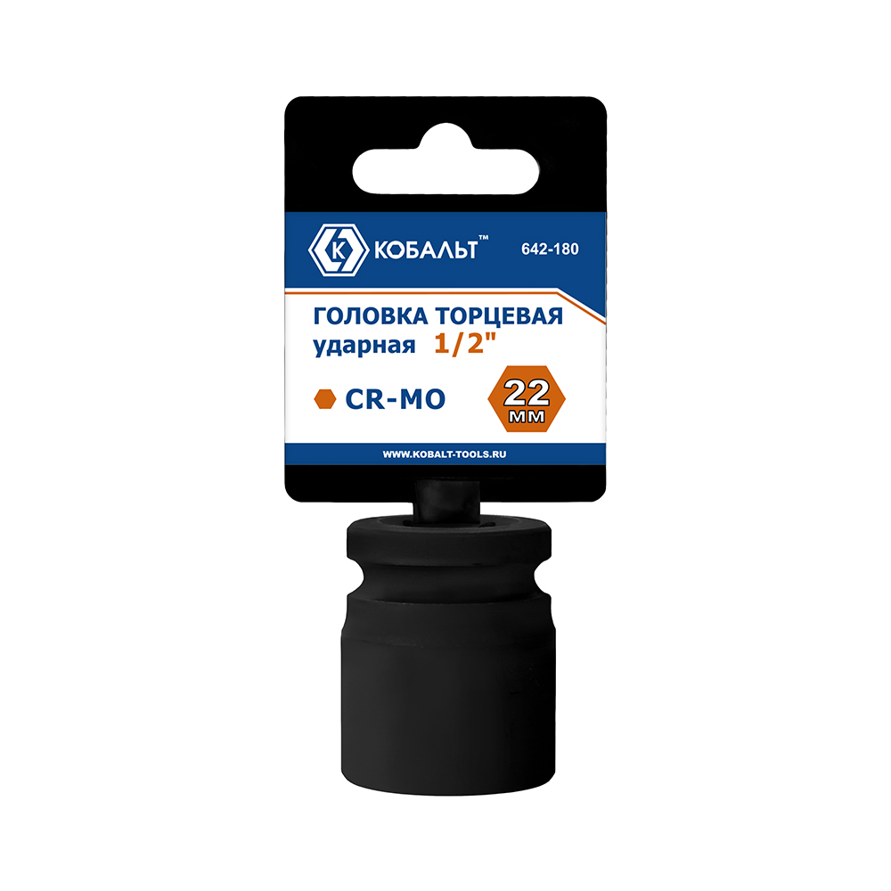 Головка торцевая ударная КОБАЛЬТ 1/2", 22 мм, CR-MO, подвес (642-180) - цена, фото, технические характеристики