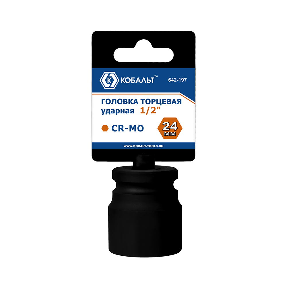 Головка торцевая ударная КОБАЛЬТ 1/2", 24 мм, CR-MO, подвес (642-197) - цена, фото, технические характеристики