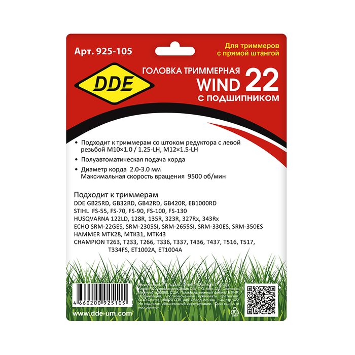 Головка триммерная DDE Wind 22 аналог HUS T35X подшипник (М10х1,25 лев., + М10х1,0 лев.) - цена, фото, технические характеристики