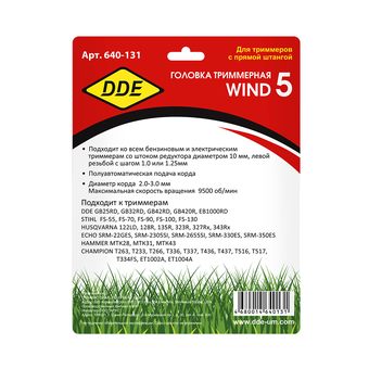 Головка триммерная DDE Wind 5 аналог HUS T35 (М10х1,25 лев., + М10х1,0 лев.) - цена, фото, технические характеристики