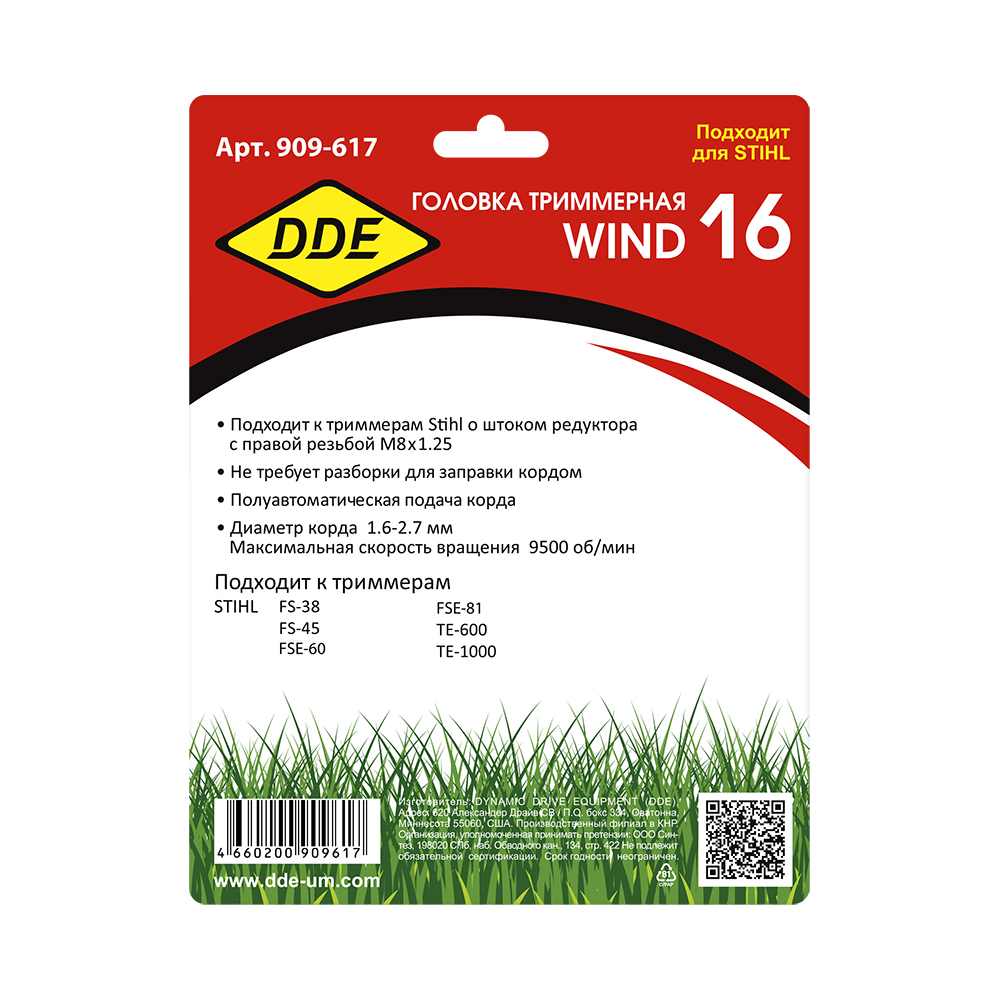 Головка триммерная DDE Wind 16 аналог Stihl AutoCut С6-2 (М8х1,25 прав.) - цена, фото, технические характеристики