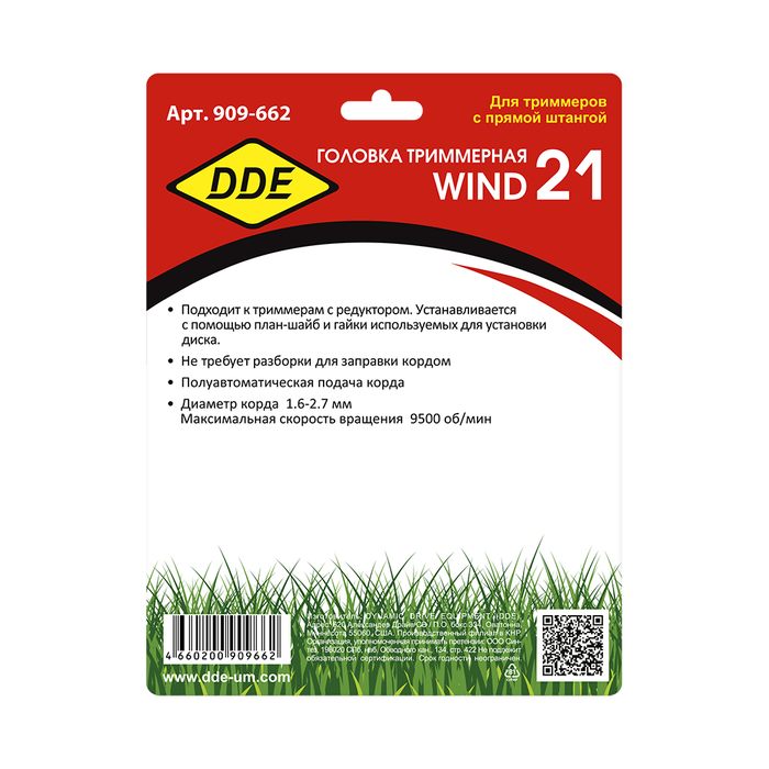 Головка триммерная DDE Wind 21 универсальная полуавтомат быстрая смена корда (крепление под гайку диска) - цена, фото, технические характеристики