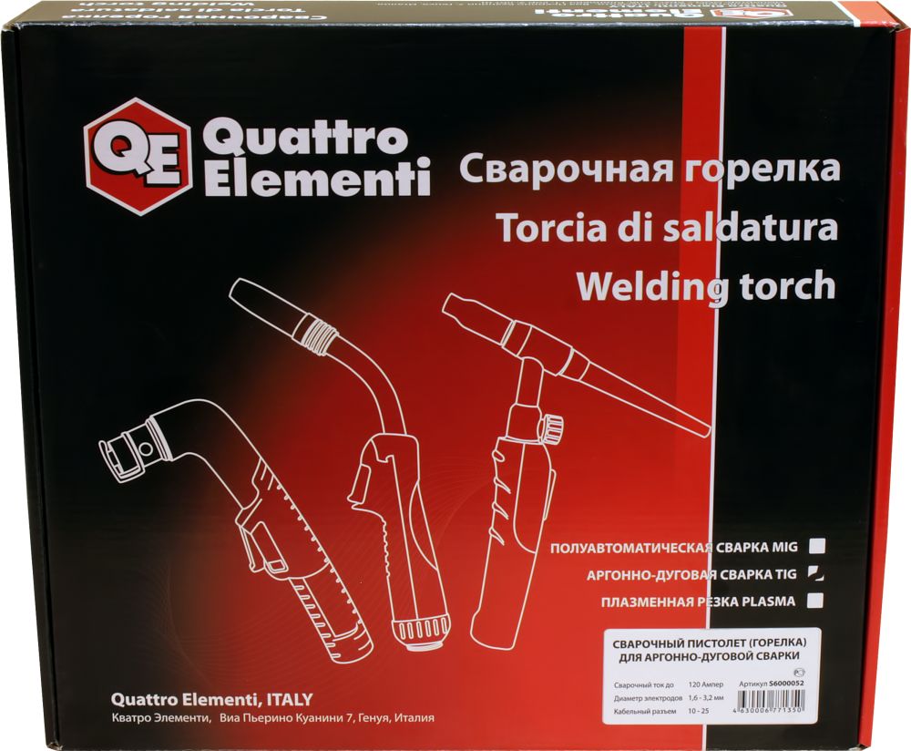 Горелка для аргонно-дуговой сварки QUATTRO ELEMENTI WP17V 120 А, ручной клапан, для серии А, В, MultiPro (S6000052) - цена, фото, технические характеристики