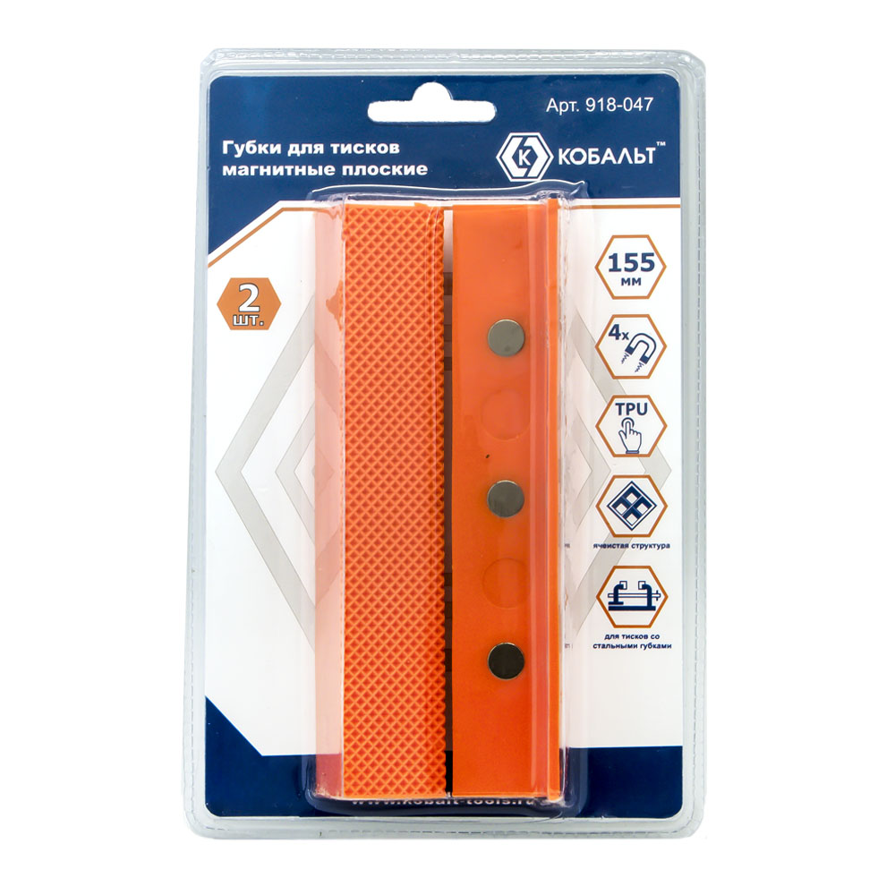Губки для тисков магнитные КОБАЛЬТ плоские 155 х 28 х 25 мм (2 шт.) блистер (918-047) - цена, фото, технические характеристики