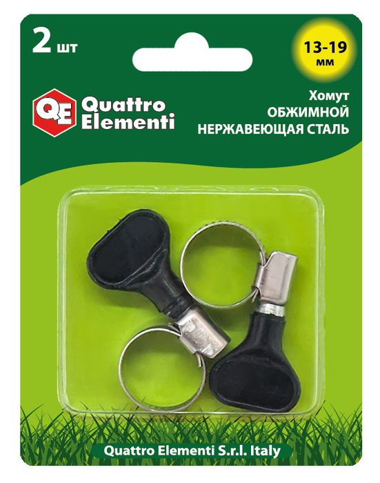 Хомут обжимной QUATTRO ELEMENTI  13-19 мм, нержавеющая сталь, с ключом, 2 шт в блистере (772-456)