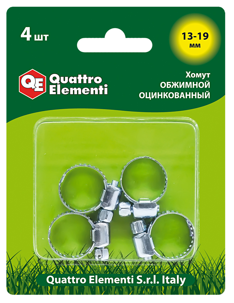 Хомут обжимной QUATTRO ELEMENTI 13-19 мм, оцинкованный, 4 шт в блистере (771-992) - цена, фото, технические характеристики