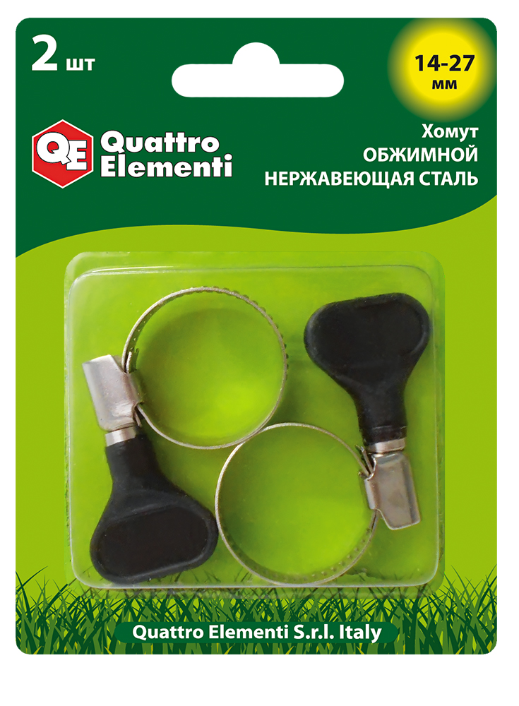 Хомут обжимной QUATTRO ELEMENTI  14-27 мм, нержавеющая сталь, с ключом, 2 шт, в блистере (772-463)