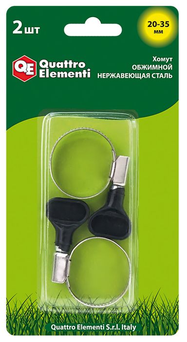 Хомут обжимной QUATTRO ELEMENTI  20-35 мм, нержавеющая сталь, с ключом, 2 шт, в блистере (642-234)