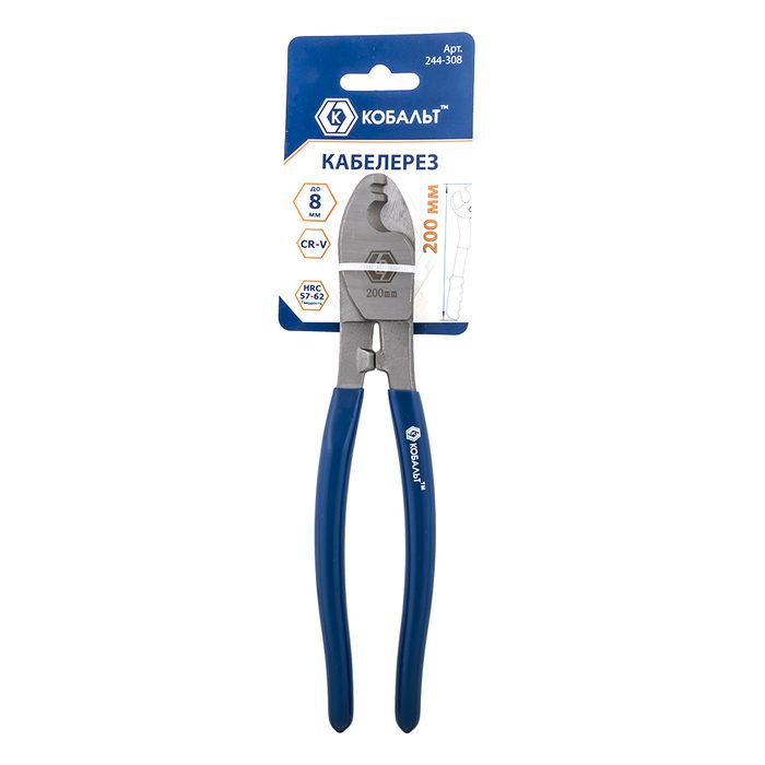 Кабелерез КОБАЛЬТ 200 мм, диаметр реза до 8 мм, площадь сечения до 38 мм2, прорезиненные рукоятки, CR-V, подвес (244-308) - цена, фото, технические характеристики