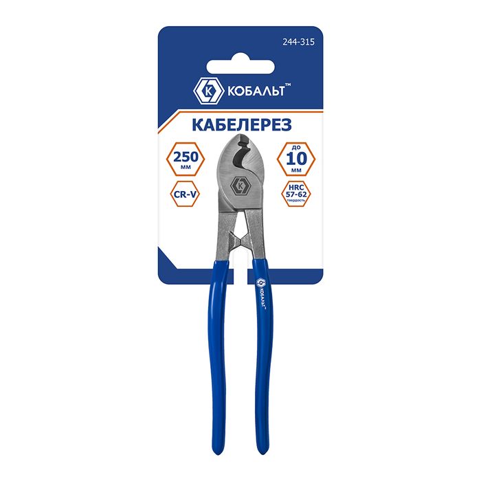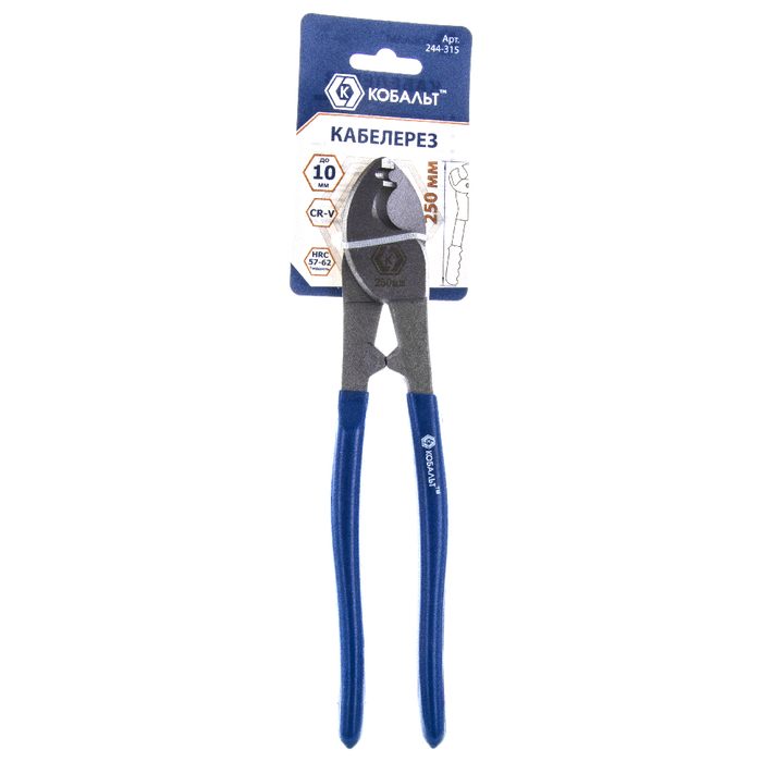 Кабелерез КОБАЛЬТ 250 мм, диаметр реза до 10 мм, площадь сечения до 60 мм2, прорезиненные рукоятки, CR-V, подвес (244-315) - цена, фото, технические характеристики