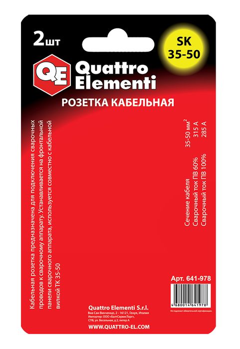Кабельный разъем QUATTRO ELEMENTI розетка кабельная сварочного аппарата SК 35-50 ( до 315 (641-978) - цена, фото, технические характеристики