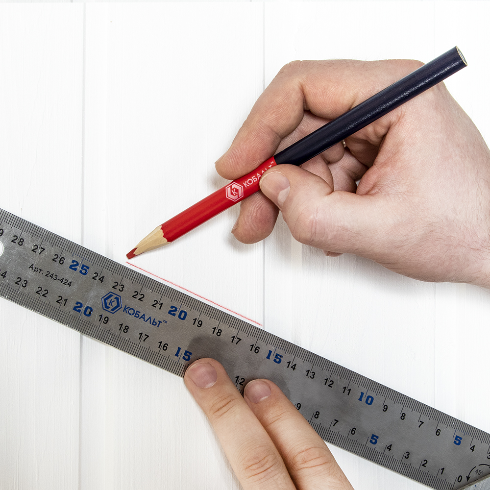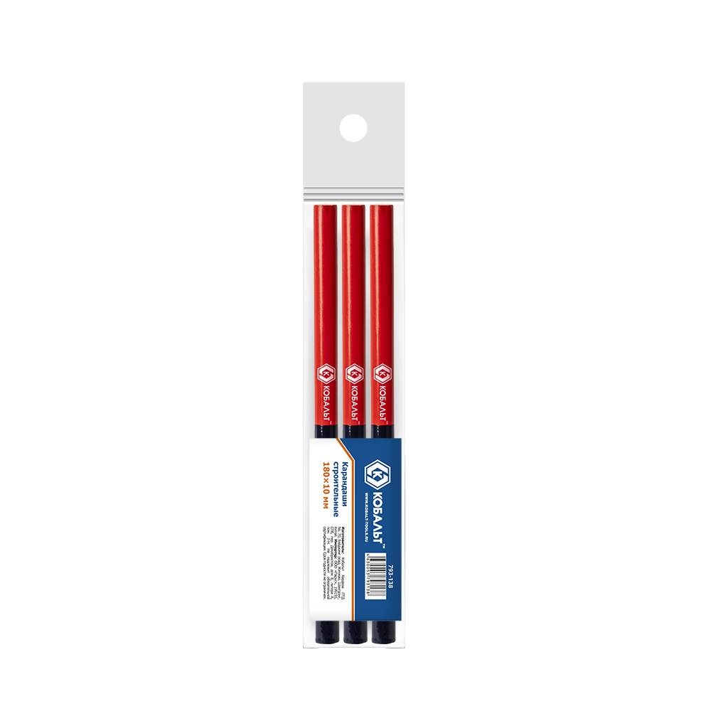 Карандаш строительный КОБАЛЬТ 2-х цветный, красный/синий, 180*10 мм, 3 ШТ., подвес (793-138) - цена, фото, технические характеристики