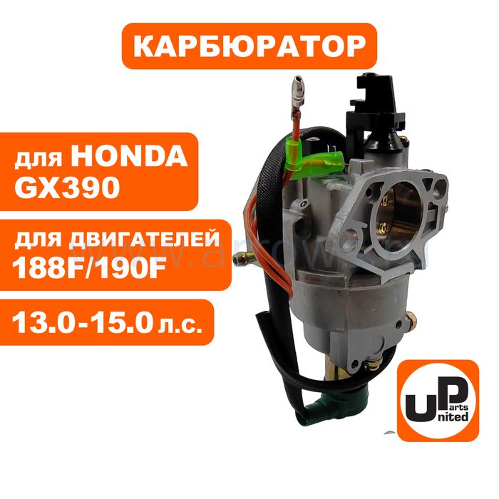 Карбюратор UNITED PARTS 188F/190F, GX390 с эл.-маг. клапаном и рычагом - цена, фото, технические характеристики