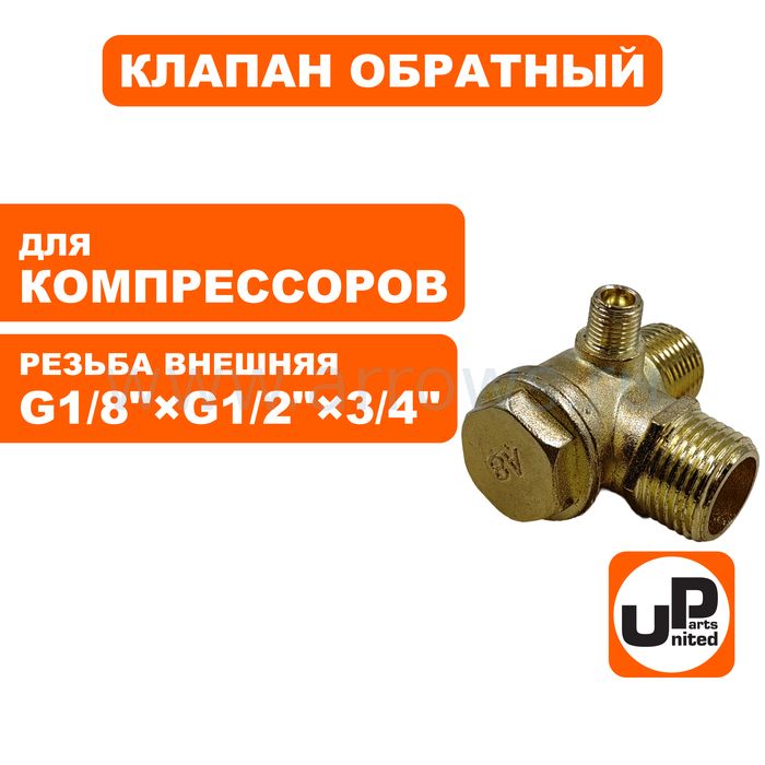 Клапан обратный UNITED PARTS для компрессора, резьба внешняя G1/8"×G1/2"×3/4"(19мм) - цена, фото, технические характеристики