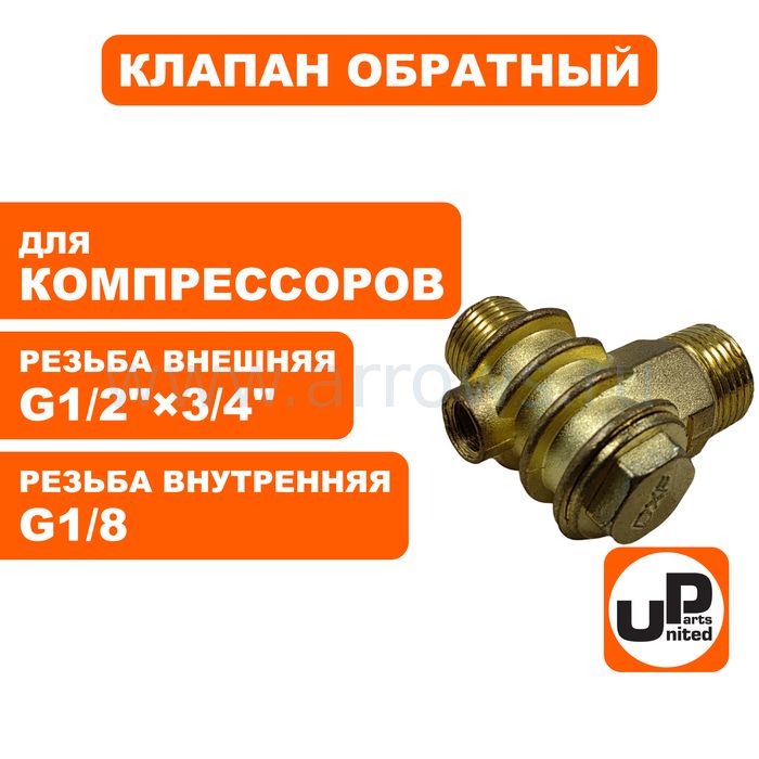 Клапан обратный UNITED PARTS для компрессора, резьба внешняя G1/2"×3/4"(19мм) × G1/8 внутренняя - цена, фото, технические характеристики