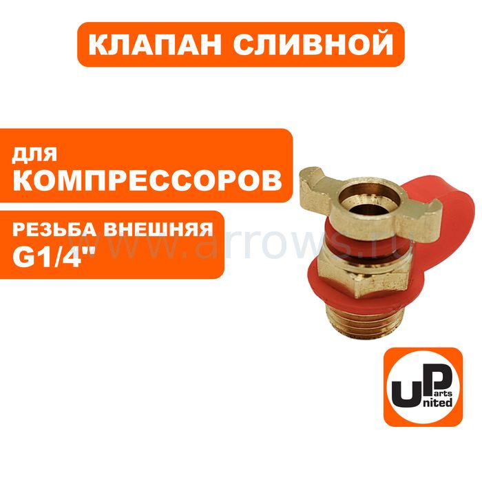 Клапан сливной UNITED PARTS для компрессора, резьба внешняя G1/4" - цена, фото, технические характеристики