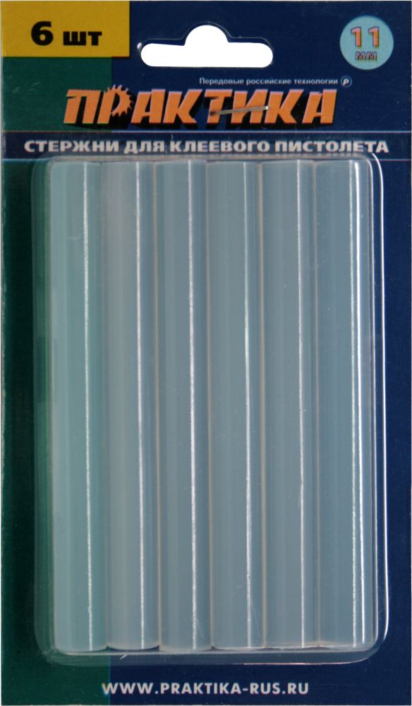 Клей для клеевого пистолета ПРАКТИКА белый, прозрачный, 11 х 100 мм, 6шт / блистер (641-589) - цена, фото, технические характеристики