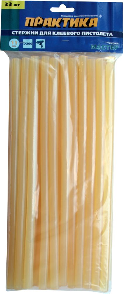 Клей для клеевого пистолета ПРАКТИКА жёлтый, прозрачный, 11 х 300 мм, 33 шт / пакет с подв (641-664) - цена, фото, технические характеристики