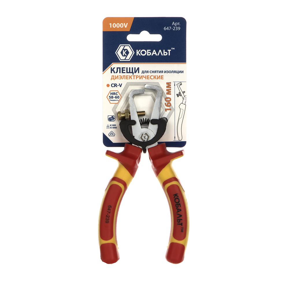 Клещи для снятия изоляции КОБАЛЬТ диэлектрические 160 мм, CR-V, подвес (647-239) - цена, фото, технические характеристики