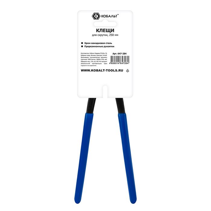 Клещи слесарные КОБАЛЬТ торцевые, 250 мм, для скрутки и перекусывания проволоки, CR-V, подвес (647-284) - цена, фото, технические характеристики