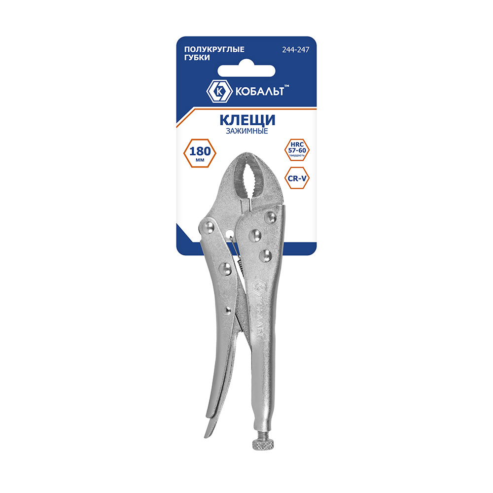 Клещи зажимные КОБАЛЬТ 180 мм, полукруглые губки, максимальный захват 30 мм, CR-V, подвес (244-247) - цена, фото, технические характеристики