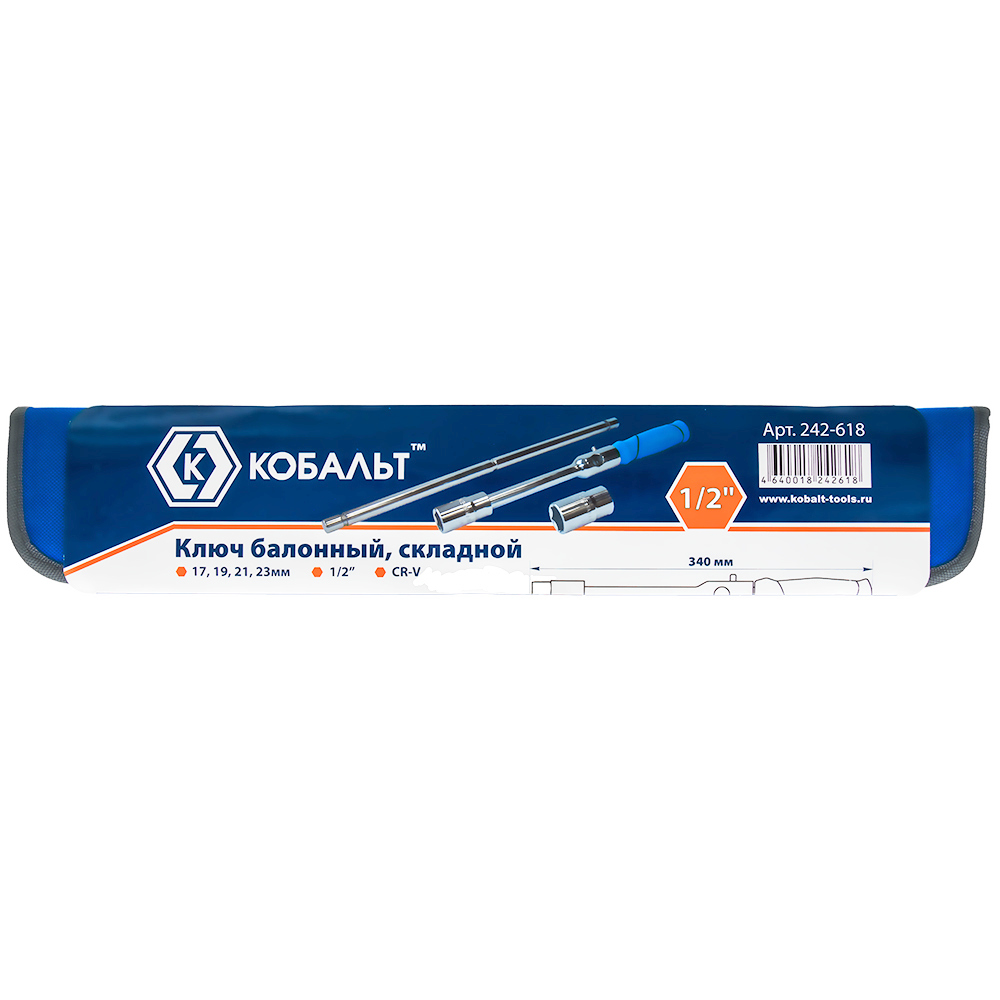 Ключ баллонный КОБАЛЬТ складной 17,19,21, 23мм, 1/2", CR-V, чехол (242-618) - цена, фото, технические характеристики
