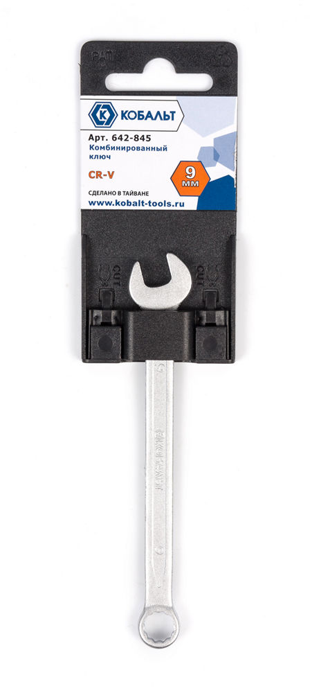 Ключ комбинированный КОБАЛЬТ 9 мм Cr-V (1 шт.) подвес (642-845) - цена, фото, технические характеристики