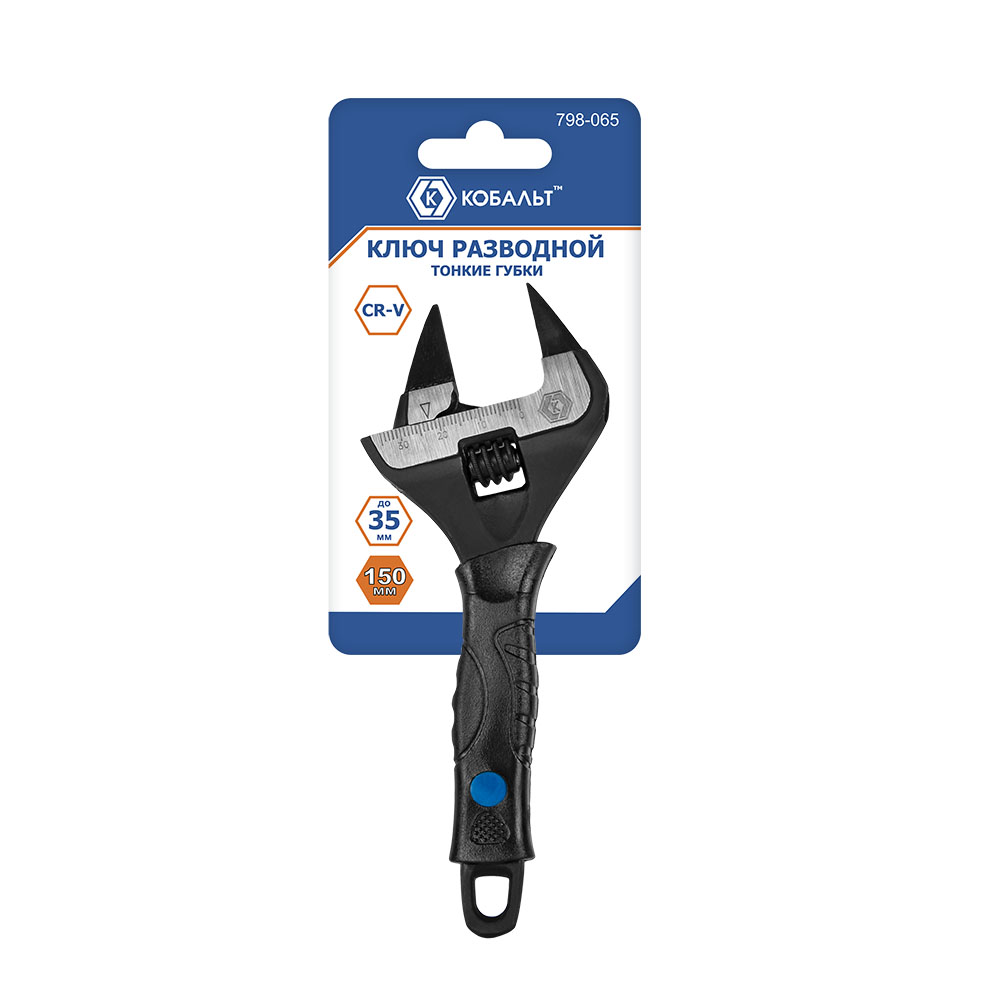 Ключ разводной с тонкими губками КОБАЛЬТ 150 мм, ширина захвата 35 мм, двухкомпонентная рукоятка CR-V подвес (798-065) - цена, фото, технические характеристики