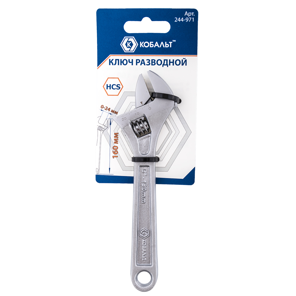 Ключ разводной с увеличенным хватом КОБАЛЬТ 160 мм, ширина захвата 24 мм, подвес (244-971) - цена, фото, технические характеристики