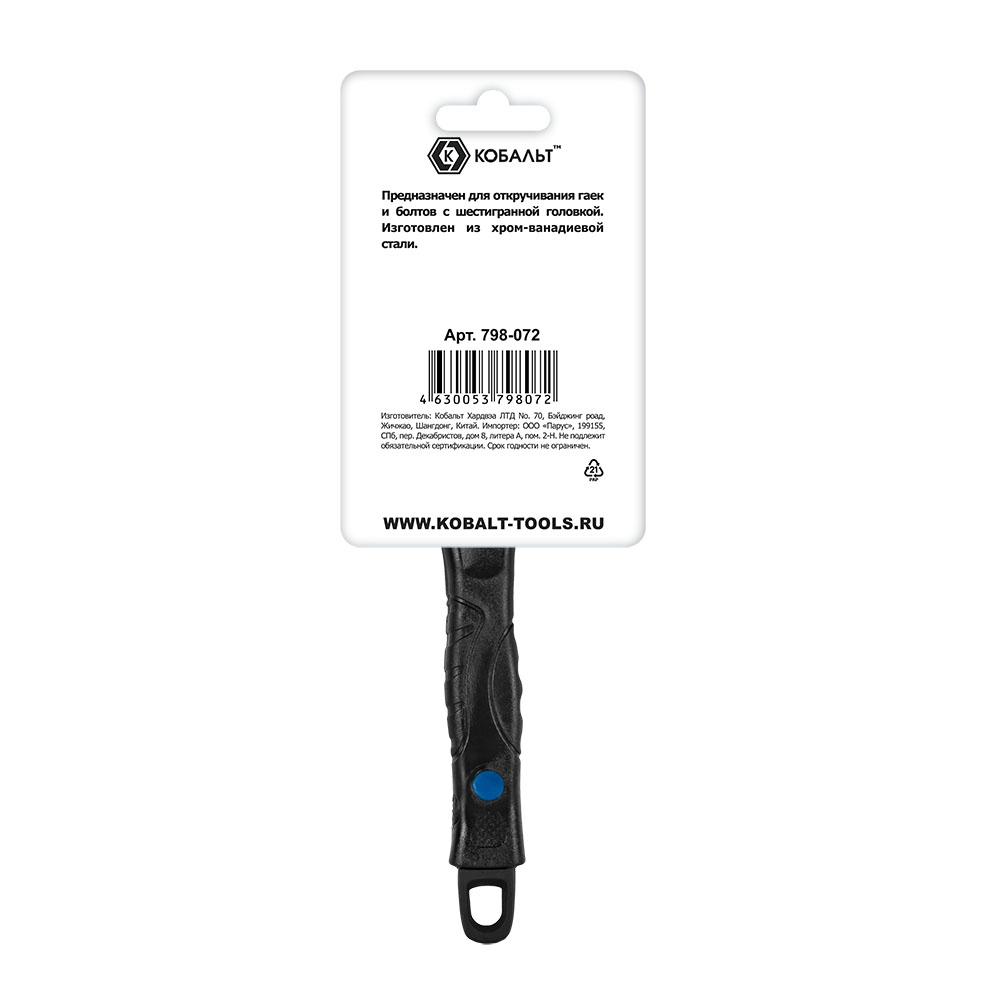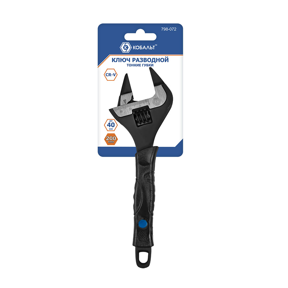 Ключ разводной с тонкими губками КОБАЛЬТ 200 мм, ширина захвата 40 мм, двухкомпонентная рукоятка CR-V, подвес (798-072) - цена, фото, технические характеристики