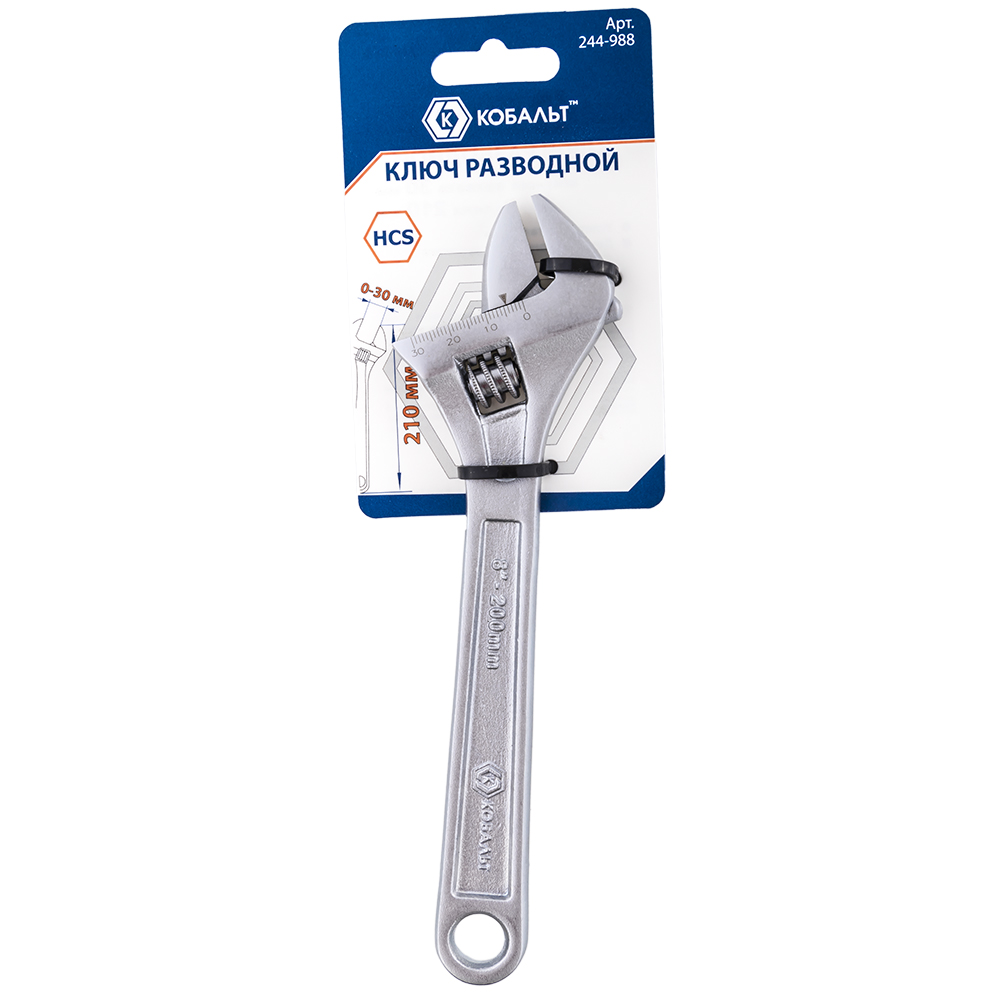 Ключ разводной с увеличенным хватом КОБАЛЬТ 210 мм, ширина захвата 30 мм, подвес (244-988) - цена, фото, технические характеристики