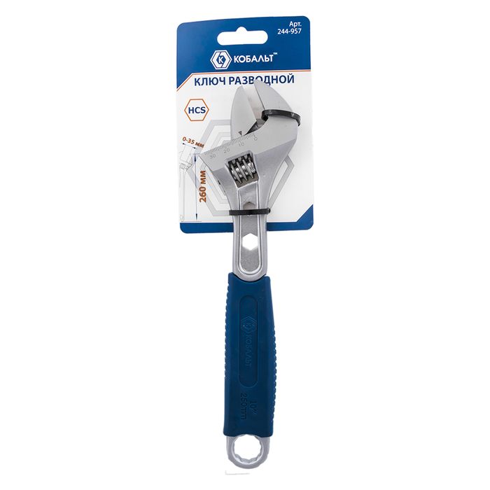 Ключ разводной с увеличенным хватом КОБАЛЬТ 260 мм, ширина захвата 35 мм, двухкомпонентная рукоятка, подвес (244-957) - цена, фото, технические характеристики