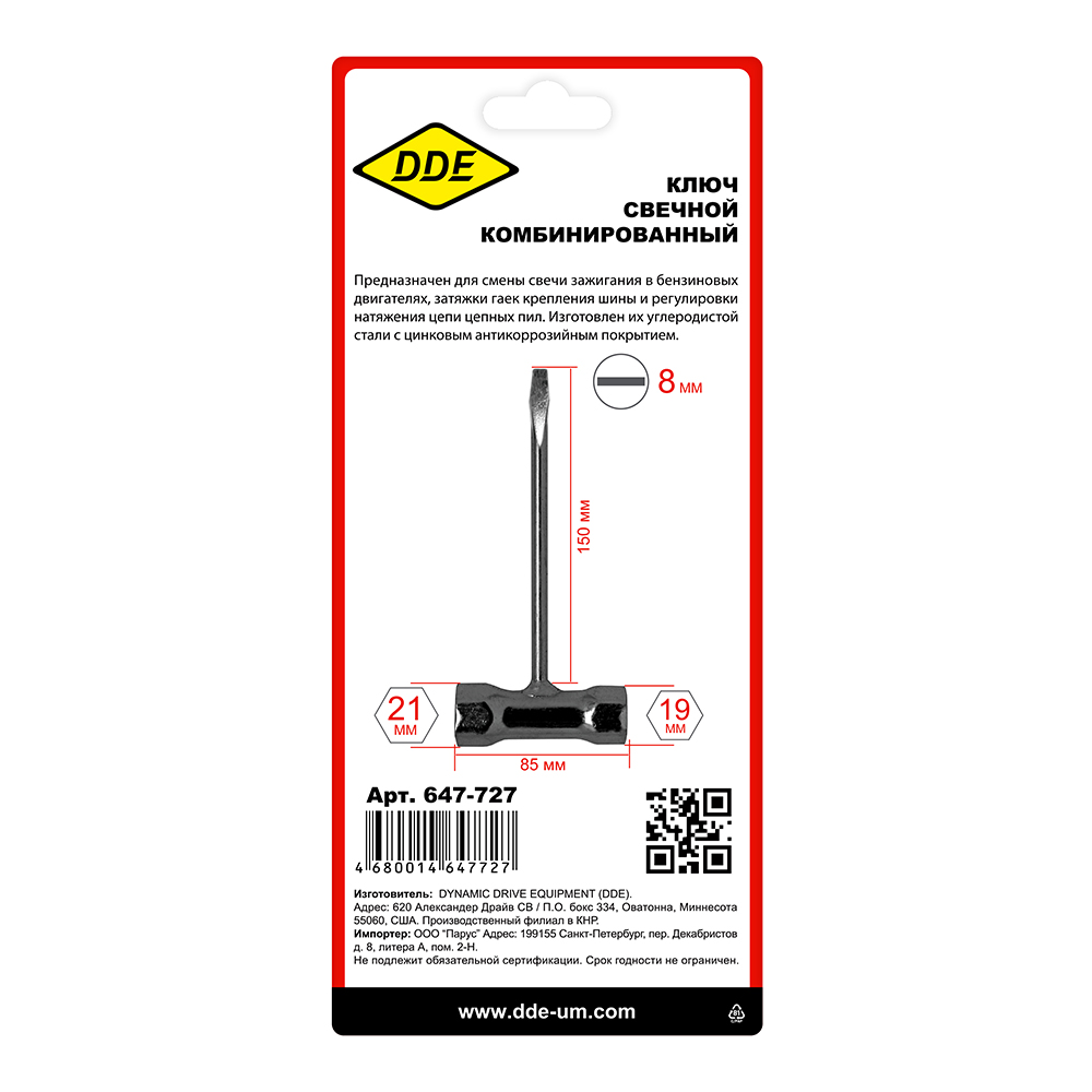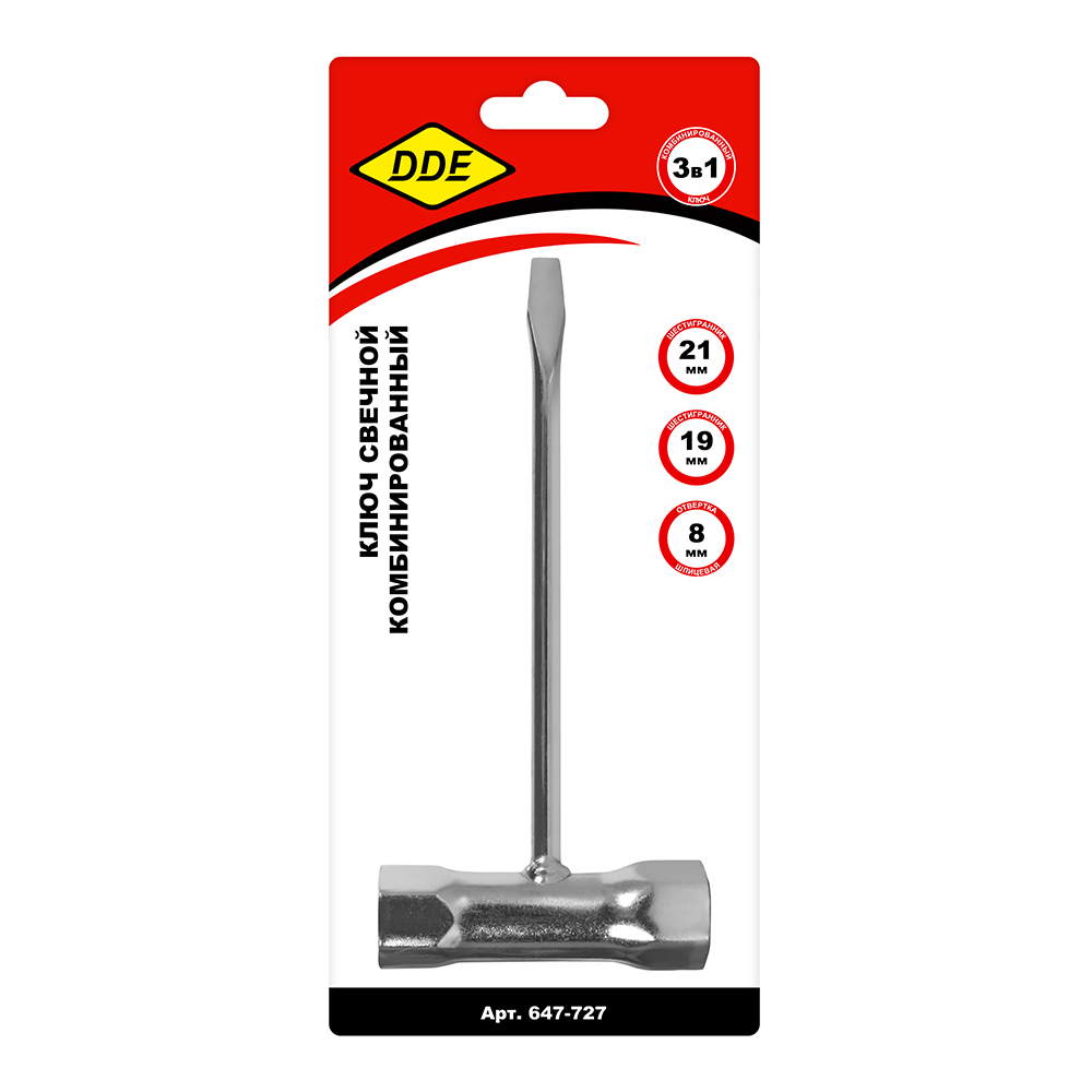 Ключ свечной комбинированный DDE 19*21мм (B&S, Stihl) - цена, фото, технические характеристики