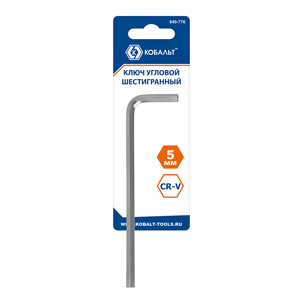Ключ угловой шестигранный КОБАЛЬТ 5 мм, Cr-V, подвес (649-776) - цена, фото, технические характеристики