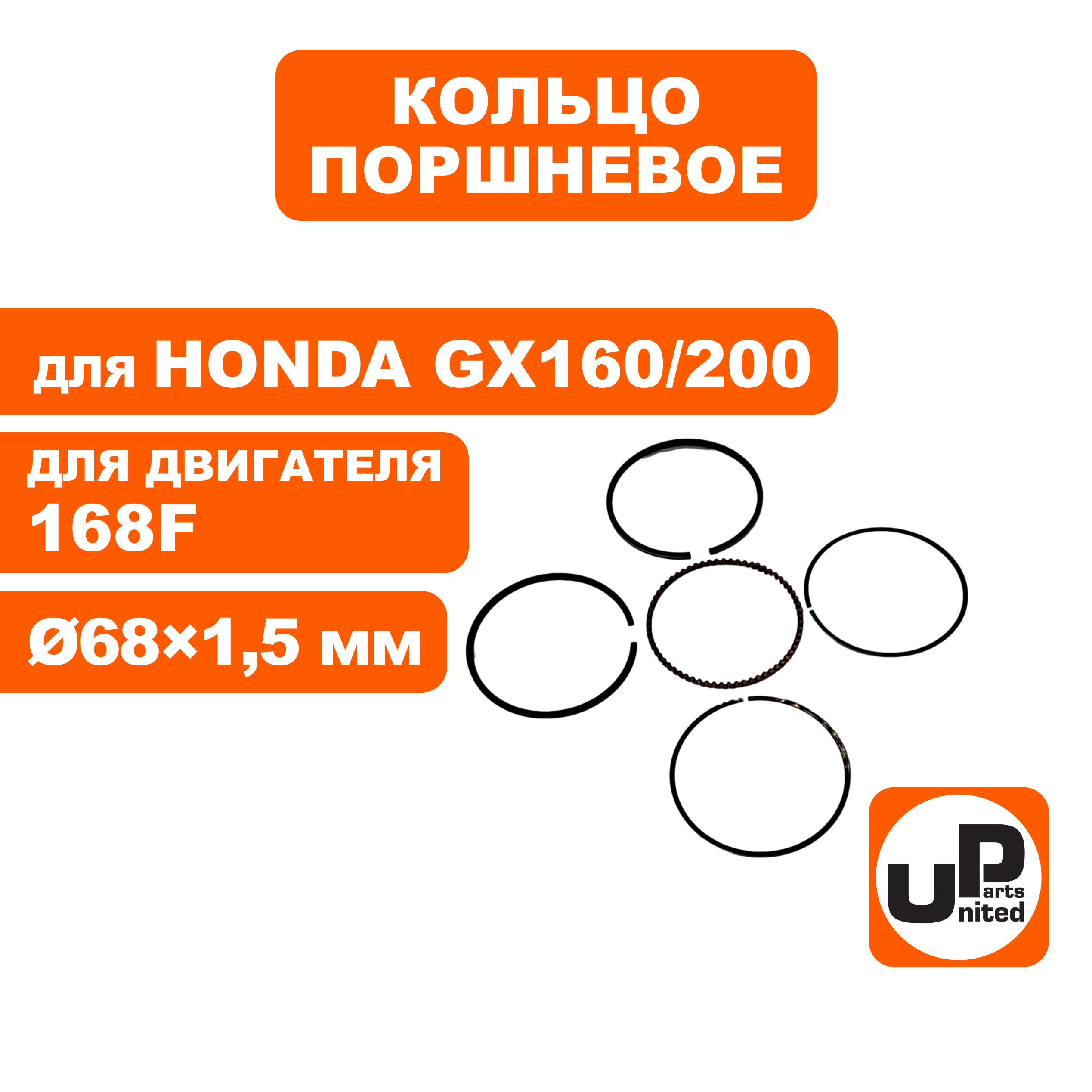 Кольцо поршневое UNITED PARTS Ø68×1,5 мм 168F, GX160/200 компл. - цена, фото, технические характеристики