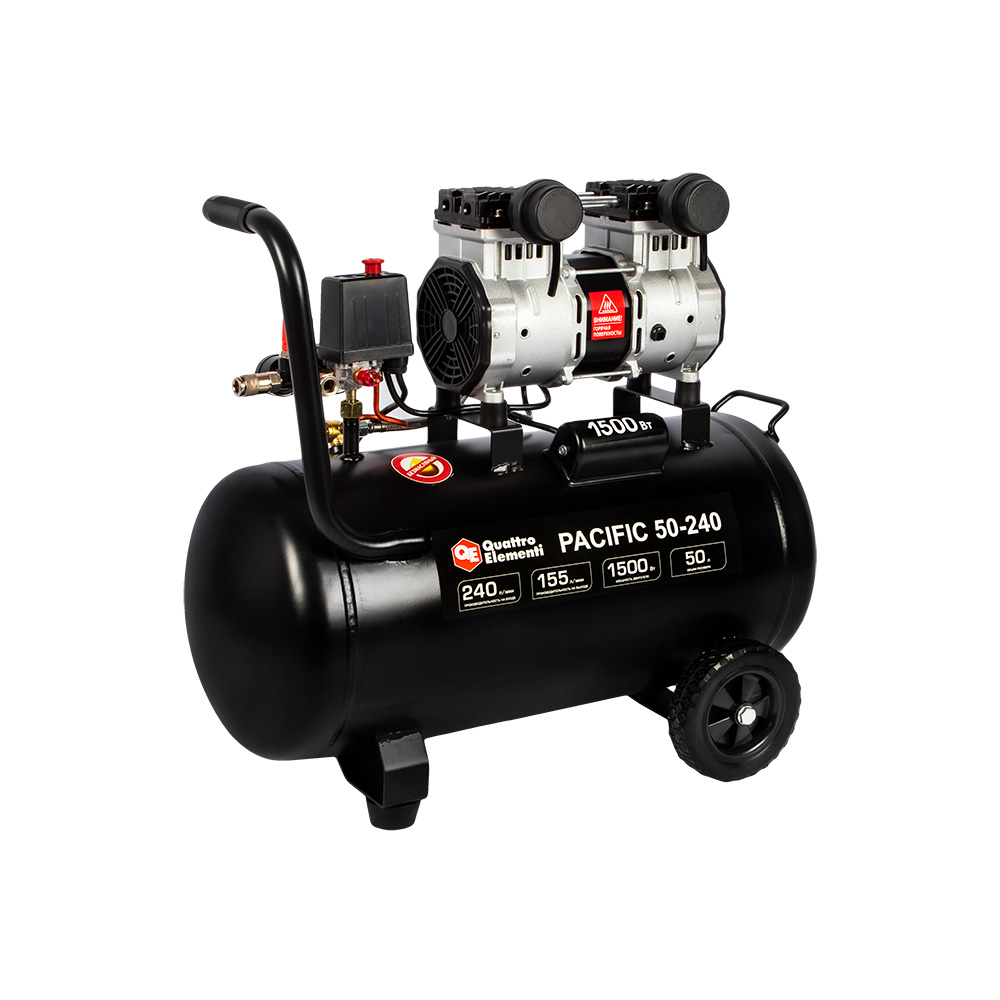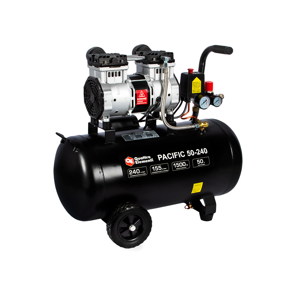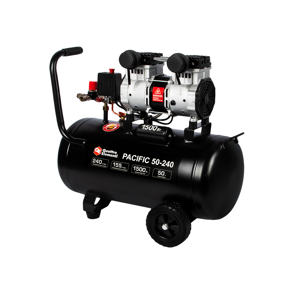 Компрессор безмасляный QUATTRO ELEMENTI PACIFIC 50-240 (240 л/мин, 50л, 1500 Вт, 8 бар, 30кг) - цена, фото, технические характеристики