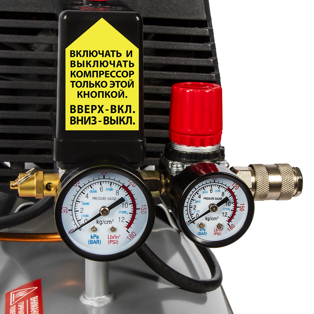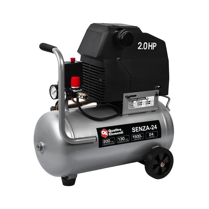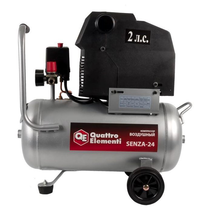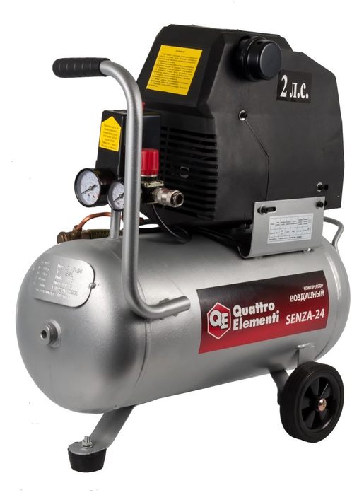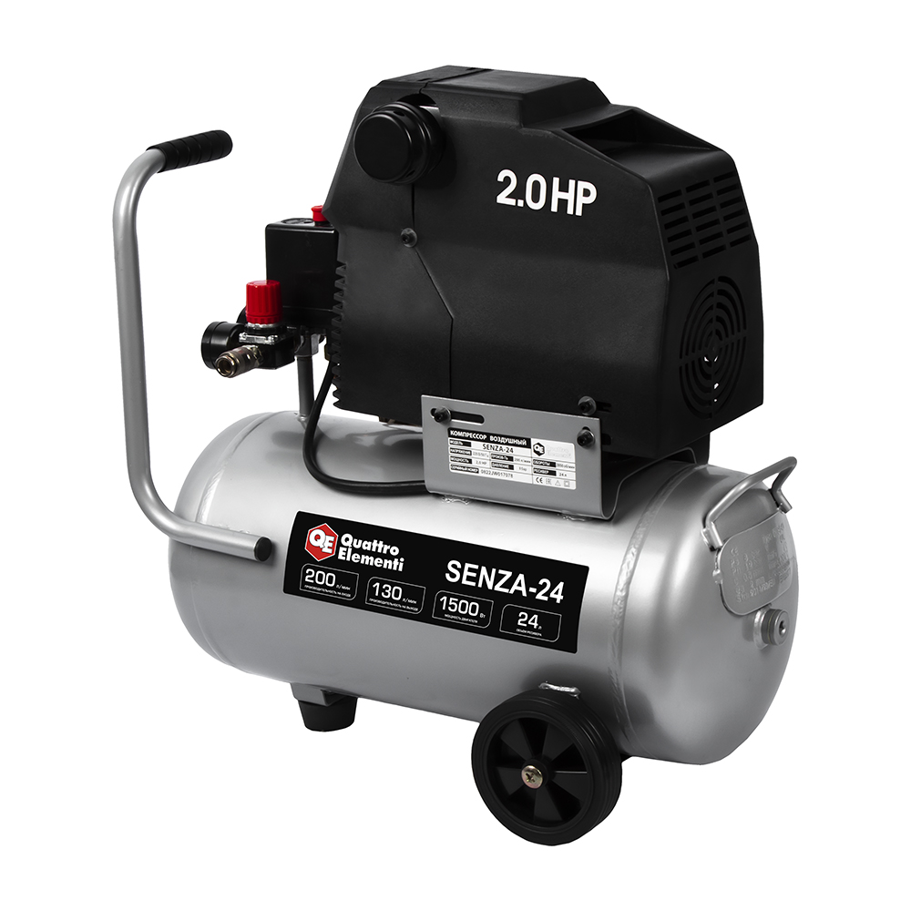 Компрессор безмасляный QUATTRO ELEMENTI SENZA-24 (200л/мин, 24л, 1500 Вт, 8 бар, 22,5кг) - цена, фото, технические характеристики