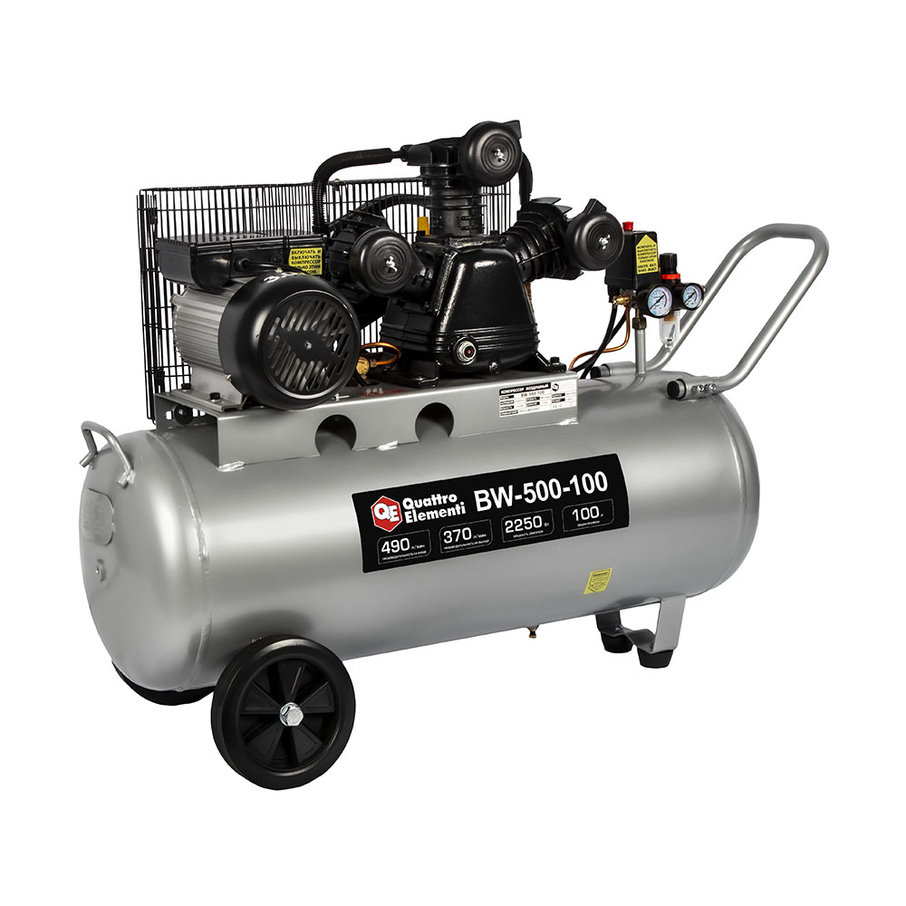 Компрессор масляный QUATTRO ELEMENTI BW-500-100 (490 л/мин, 100 литров, 2250 Вт, 8 бар, 74,5 кг, V-образн/ Ременной) - цена, фото, технические характеристики