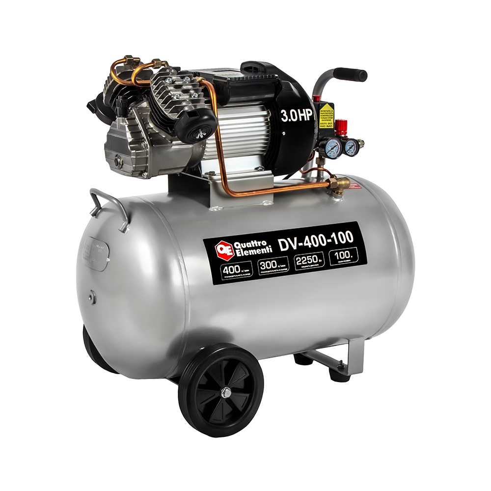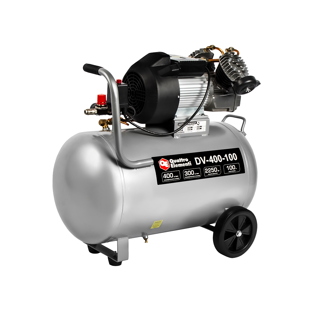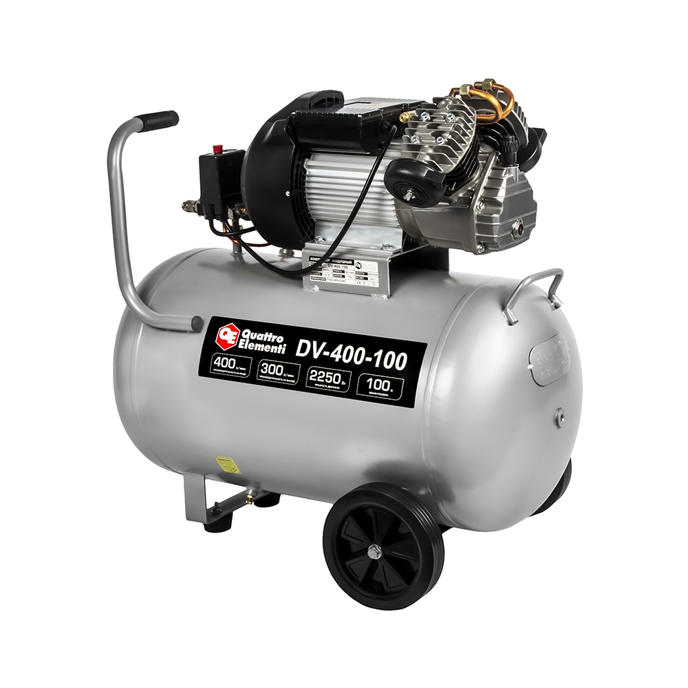 Компрессор масляный QUATTRO ELEMENTI DV-400-100 (400 л/мин, 100л, 2250 Вт, 8 бар, 56 кг, V-образный) - цена, фото, технические характеристики