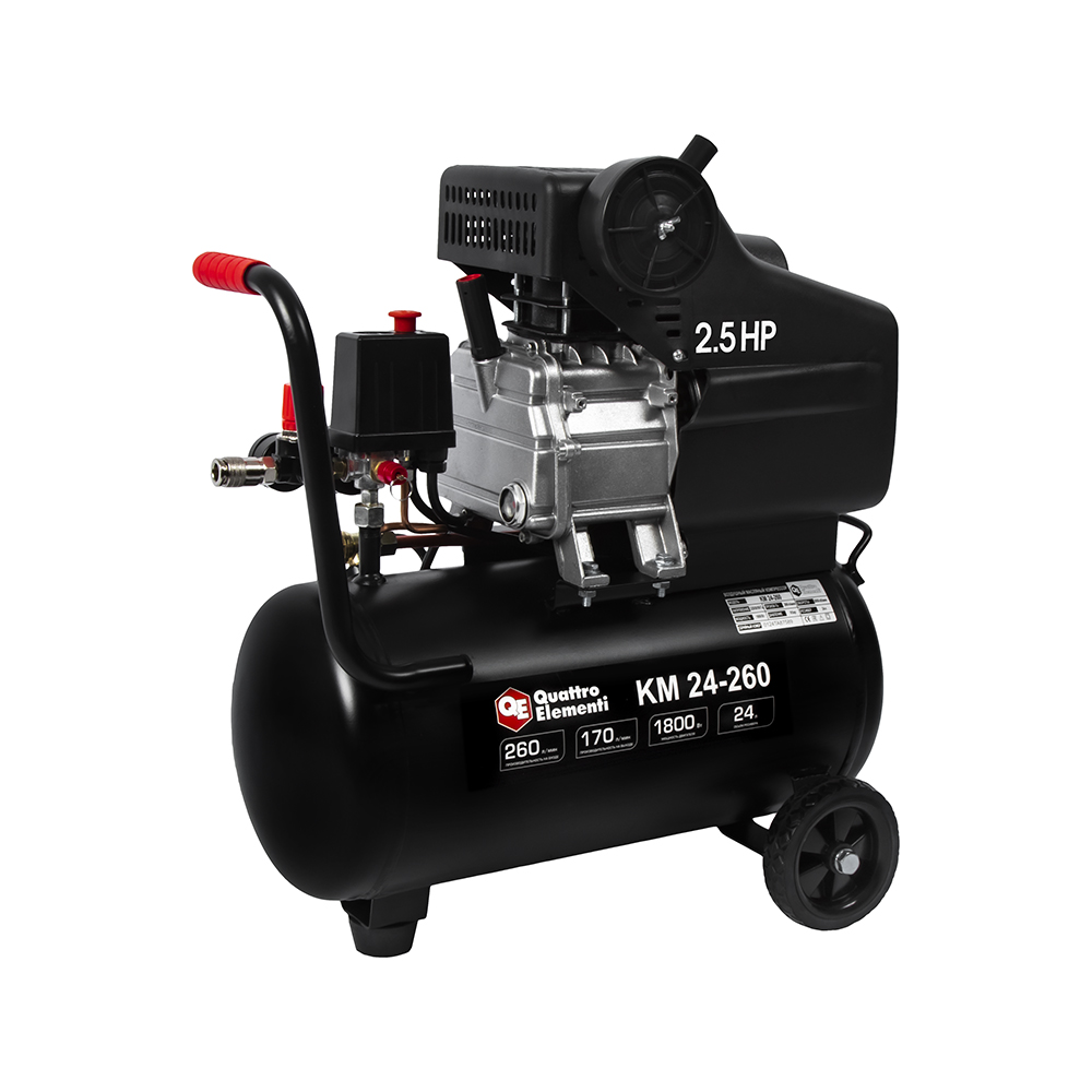 Компрессор масляный QUATTRO ELEMENTI KM 24-260 ( 260л/мин, 24л, 1800 Вт, 8 бар, 25кг) - цена, фото, технические характеристики