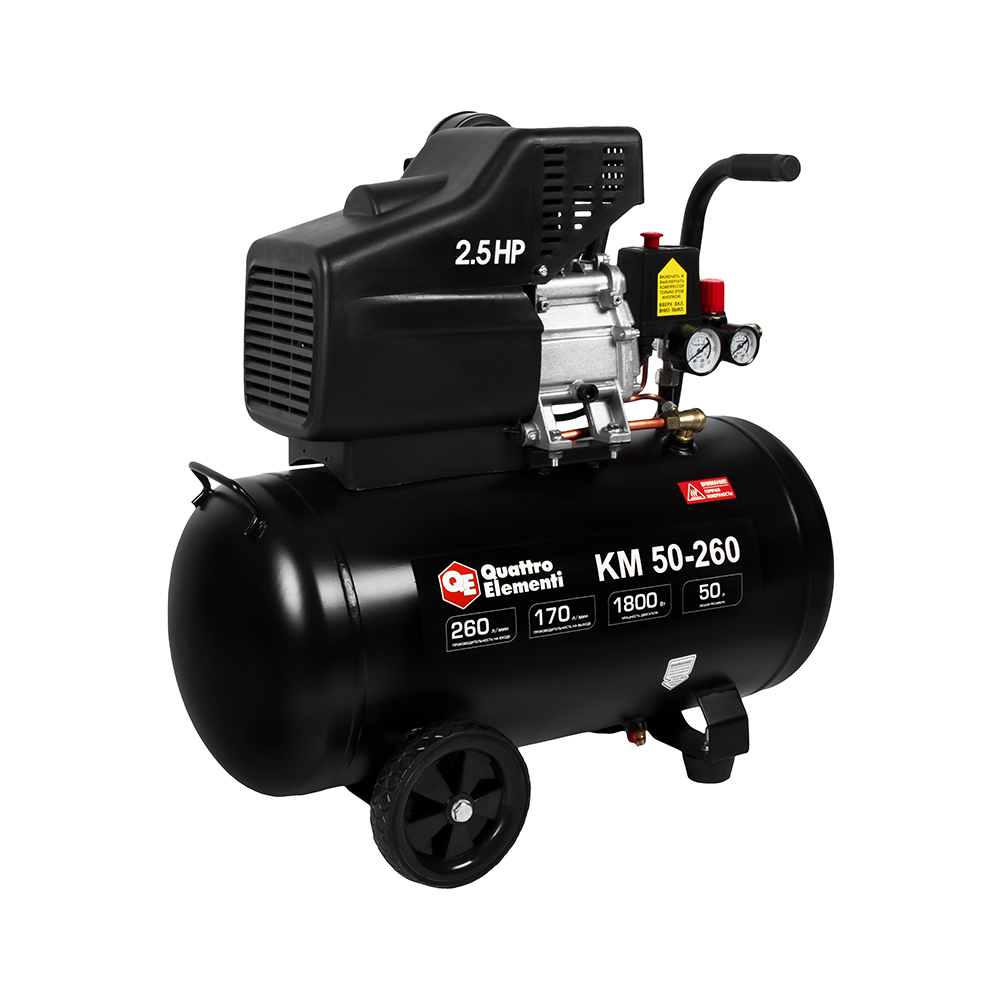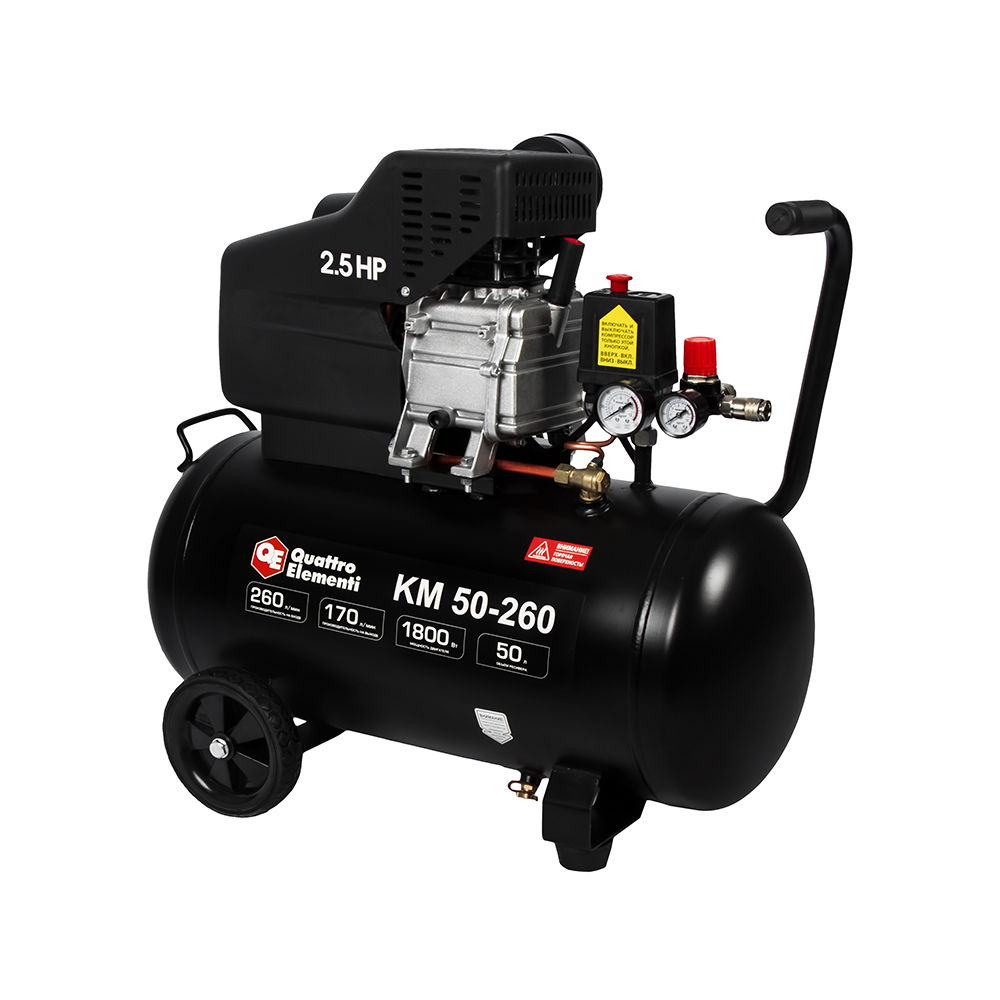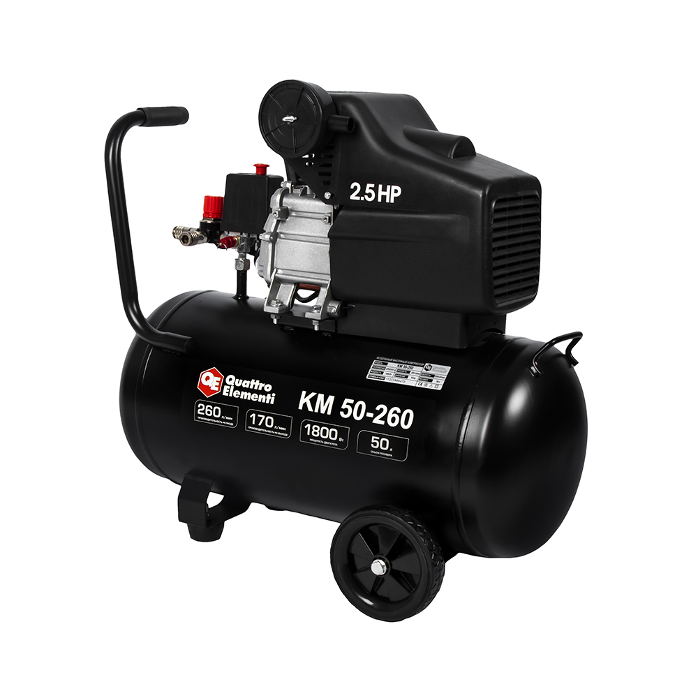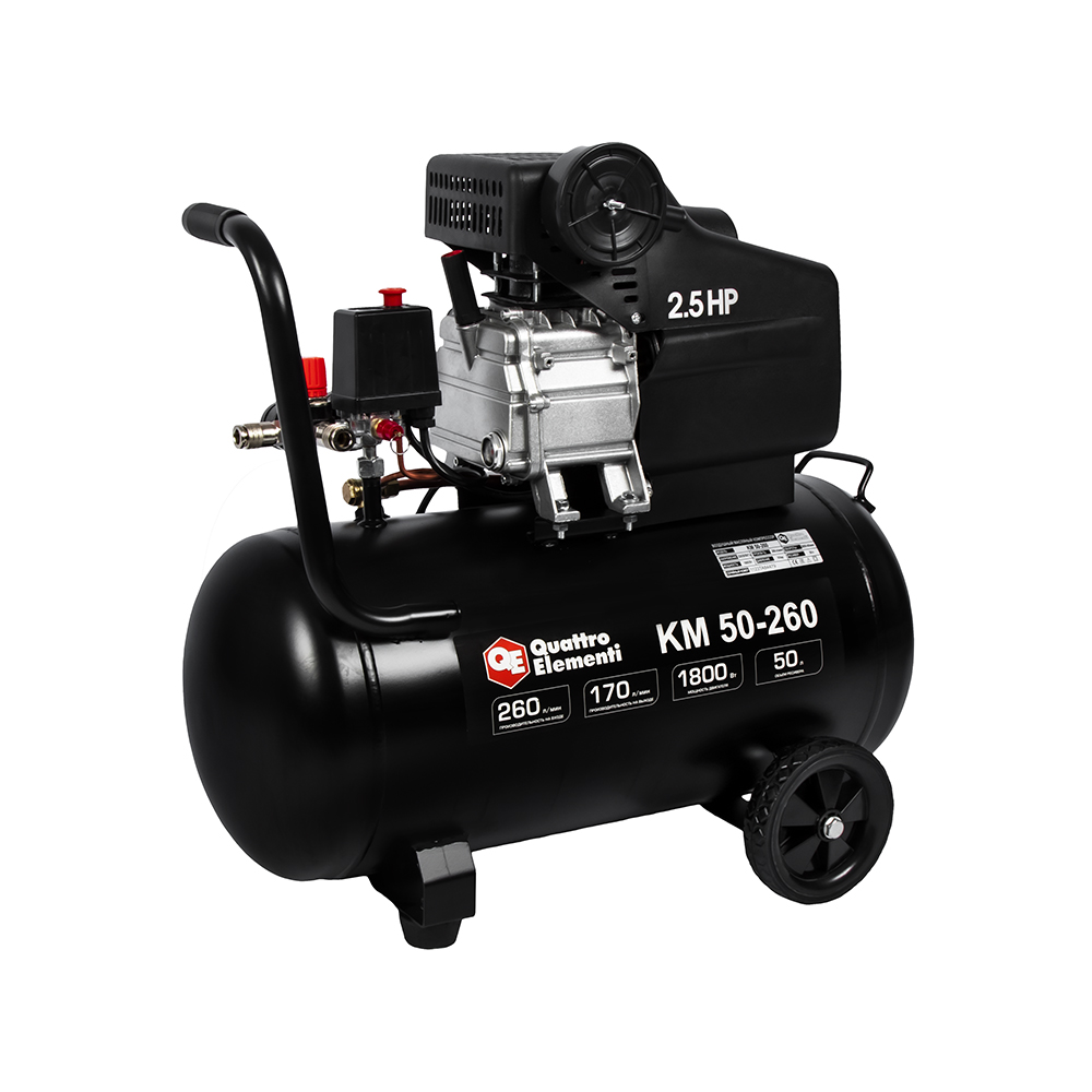Компрессор масляный QUATTRO ELEMENTI KM 50-260 ( 260л/мин, 50л, 1800 Вт, 8 бар, 31кг) - цена, фото, технические характеристики