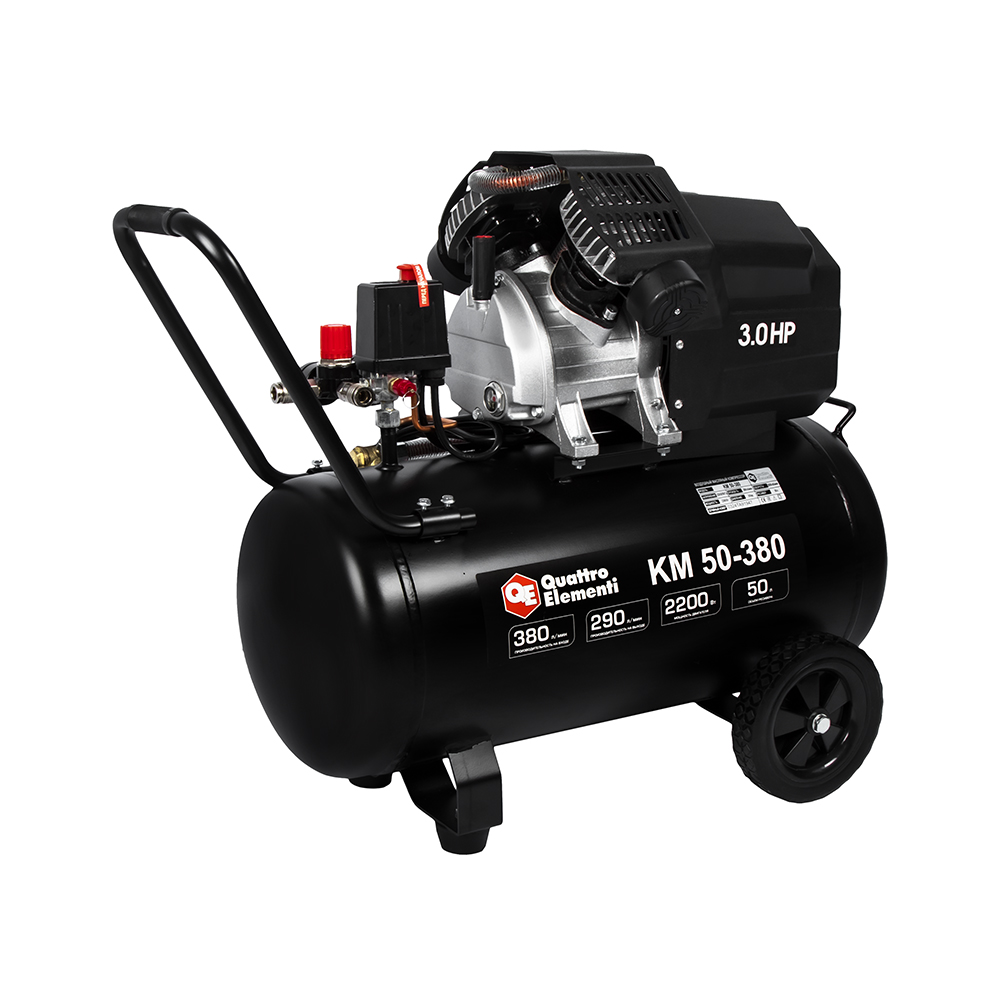 Компрессор масляный QUATTRO ELEMENTI KM 50-380 (380л/мин, 50л, 2200 Вт, 8 бар, 41 кг. V-образный) - цена, фото, технические характеристики