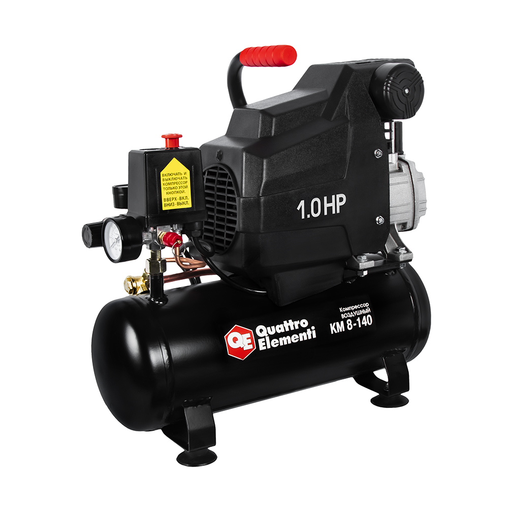 Компрессор масляный QUATTRO ELEMENTI KM 8-140 ( 140л/мин, 8л, 800 Вт, 8 бар, 15кг) - цена, фото, технические характеристики