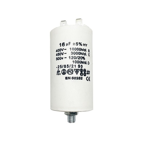Конденсатор UNITED PARTS CBB60, 16 мкФ, 450В, 2 клеммы, шпилька M8 (90-0989) - цена, фото, технические характеристики