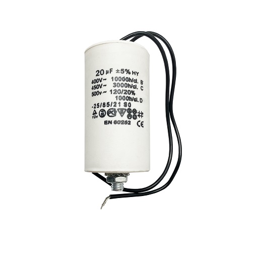 Конденсатор UNITED PARTS CBB60, 20 мкФ, 450В, гибкие выводы, шпилька М8 (90-1006)