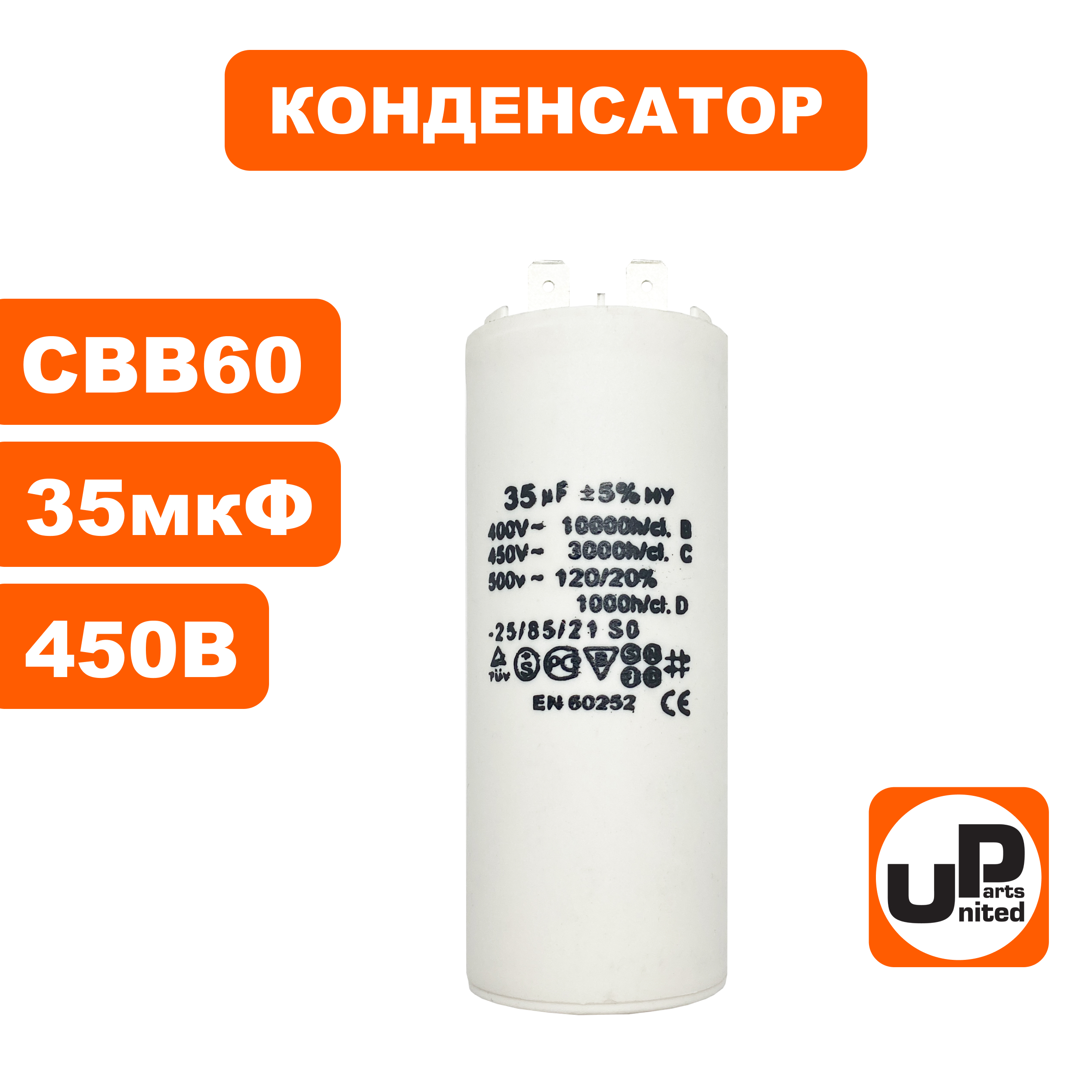 Конденсатор UNITED PARTS CBB60, 35 мкФ, 450В, 2 клеммы (90-0980) - цена, фото, технические характеристики