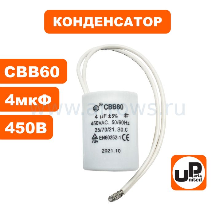Конденсатор UNITED PARTS CBB60, 4 мкФ, 450В, гибкие выводы (90-0320)